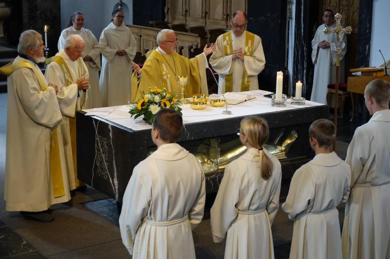 In seinem Predigtwort blickte der Ehrengast Abt Peter Stuefer OSB auf Niklaus von Flüe und den heiligen Benedikt. Beide haben sich in die Stille und Einsamkeit zurückgezogen und daraus Kraft geschöpft. Und beiden war das Hören wichtig.