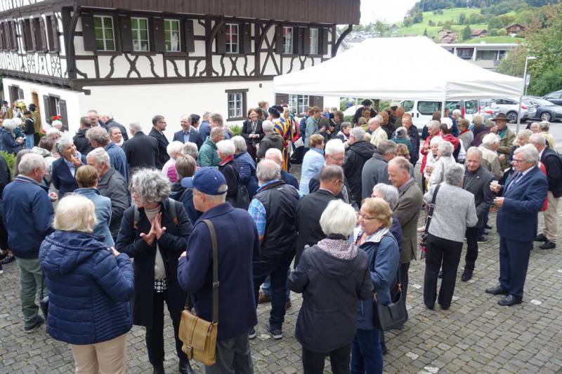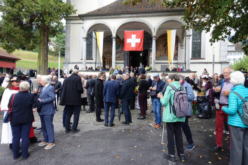 Im Anschluss an den Gottesdienst nahm die grosse Schar gerne am von der Kirchgemeinde offerierten Apéro teil. Behörden und Vertretungen aus Politik und Kirche mischten sich unter das Volk.