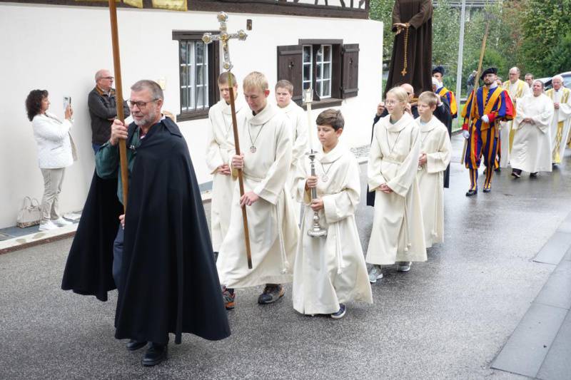 In seinem Predigtwort blickte der Ehrengast Abt Peter Stuefer OSB auf Niklaus von Flüe und den heiligen Benedikt. Beide haben sich in die Stille und Einsamkeit zurückgezogen und daraus Kraft geschöpft. Und beiden war das Hören wichtig.