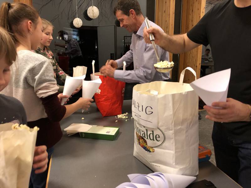 Herrlich duftete es in unserem Pfarreiheim als unsere Ministrantinnen und Ministranten am So, 2. Februar zum Miniabend eintrafen. Mmm… fein! Die Minis kamen aus dem Schwärmen kaum heraus. Und schon bald entdeckten sie die Quelle des köstlichen Duftes: zwei riesige Tüten voll mit frisch gemachtem Popcorn. Sogar salzig oder süss gab es zur Auswahl. Einem schönen Kinoabend stand nichts mehr im Wege!