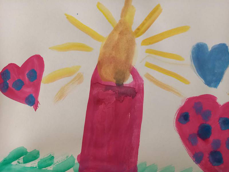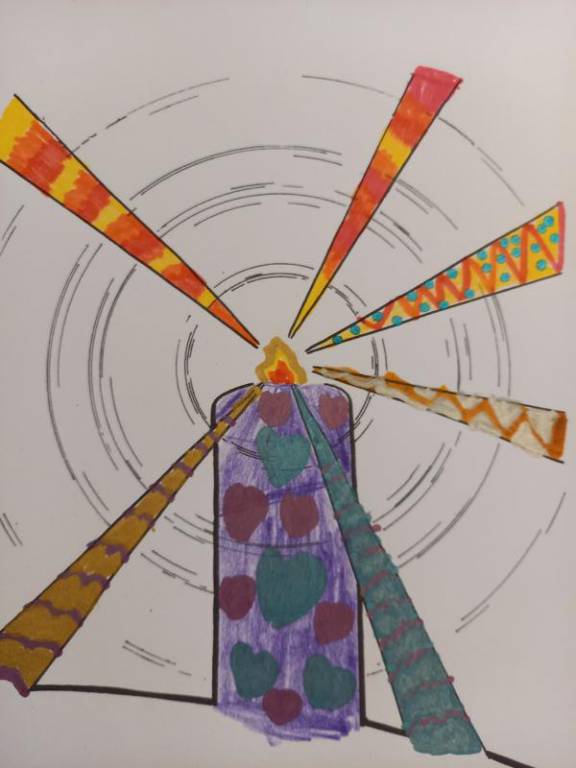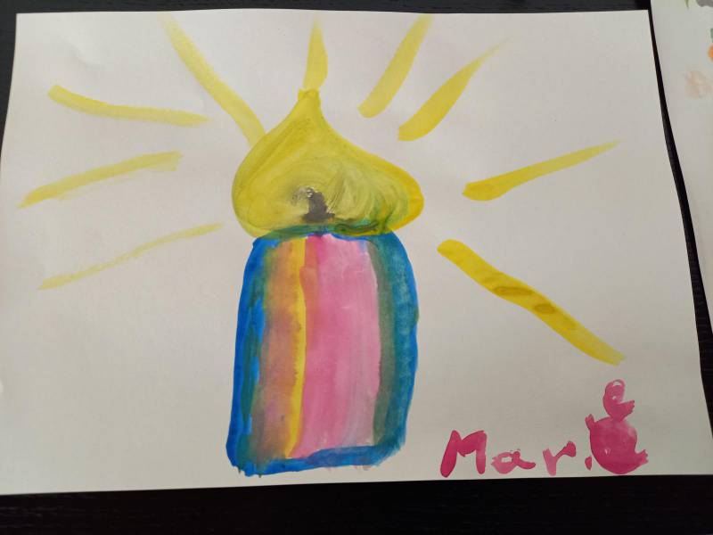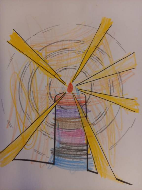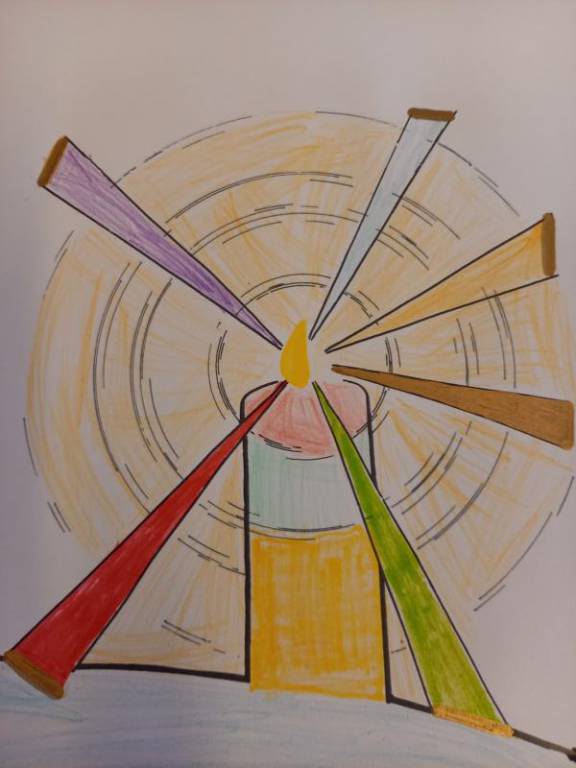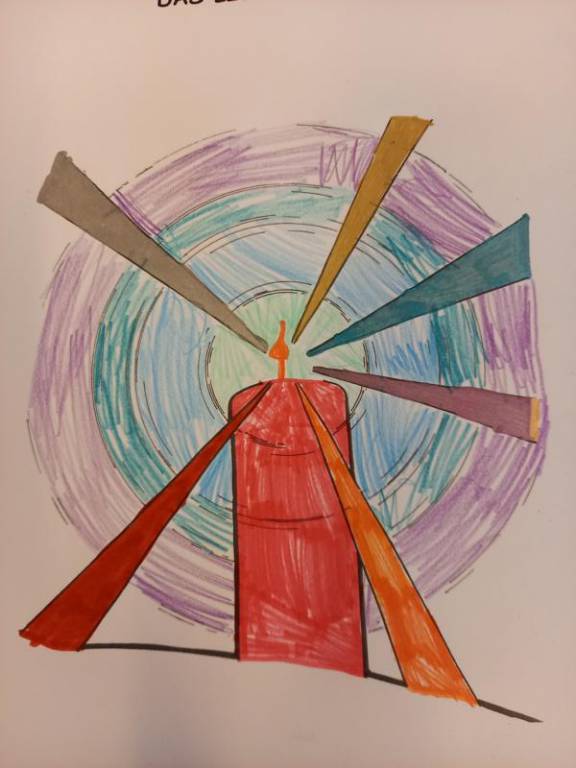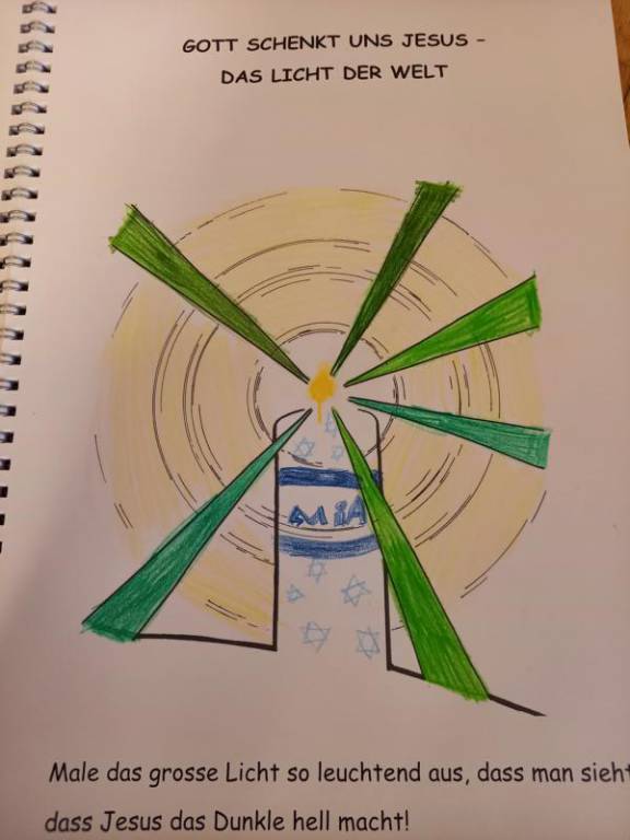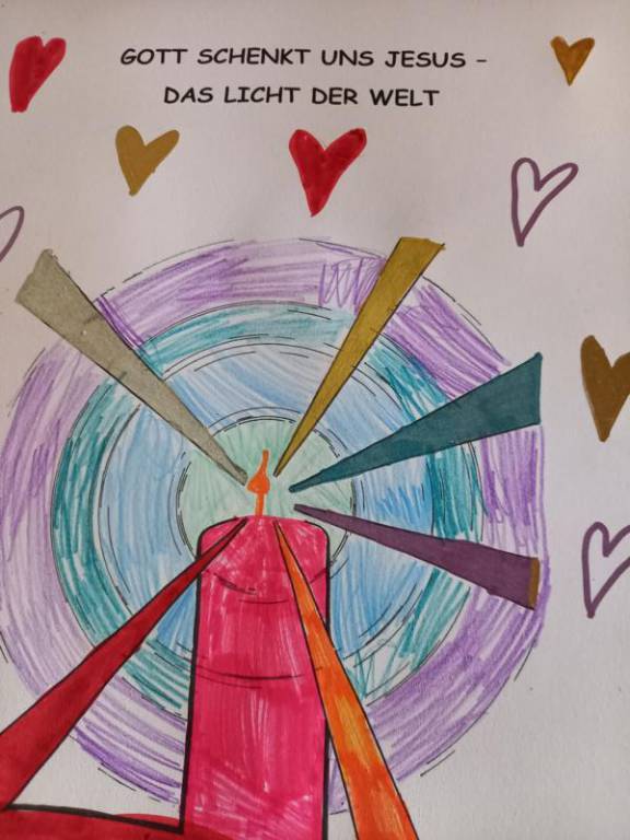 Mit dem Lied: „Wer isch isäs Liächt – wer machts’Dunklä hell – Jesus dui bisch isäs Liächt“ und mit den Bild-Worten von Jesus, die im Heiligen Buch zu finden sind: „Ich bin das Licht für die Welt“, haben die Kinder der 2. Klassen ihr neu gewonnenes Bild von Jesus, kreativ gestaltet.