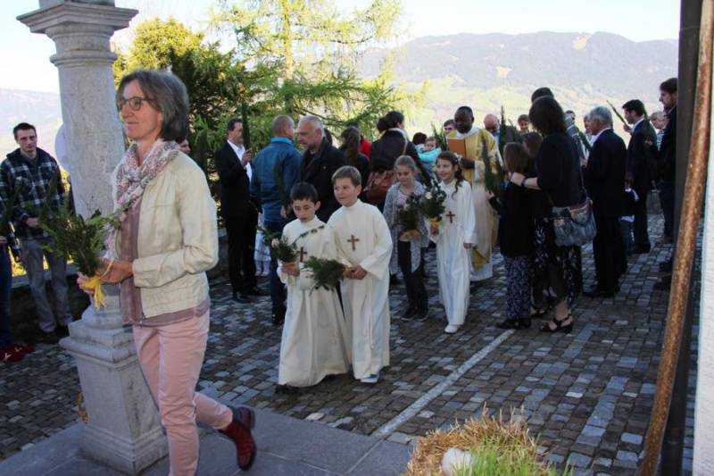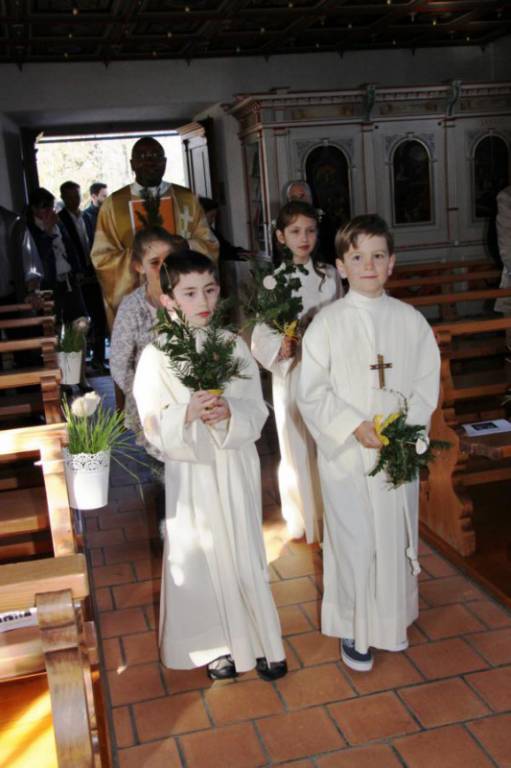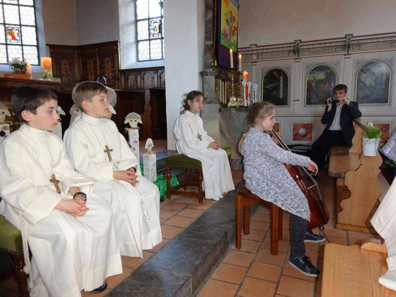 Am Palmsonntag durften Noah Anderhalden, Lucy Hüppi und Rafael Michel in der feierlich gezierten Flüeli-Kapelle die 1. HL. Kommunion feiern.