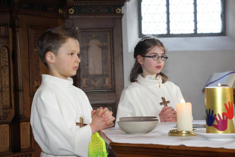Begleitet von Familien und Gästen durften die Kinder ihre Hände ganz bewusst für Jesus öffnen, um sich von ihm beschenken zu lassen.