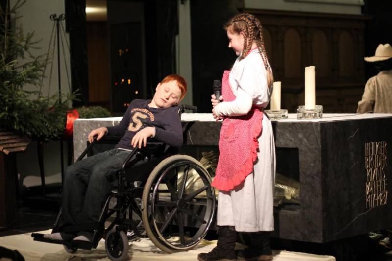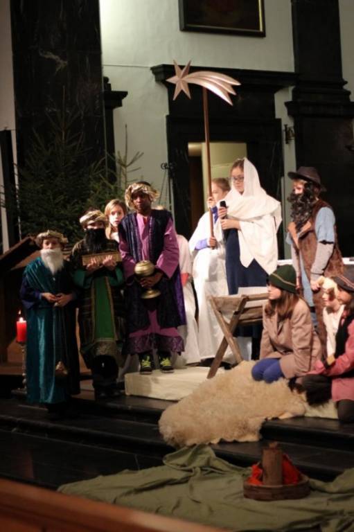 Im Rahmen der Weihnachtsfeier für Familien haben Schülerinnen und Schüler der 5. und 6. Klassen am Heiligabend das Krippenspiel "Das schönste Ge-schenk" aufgeführt. Unter der Leitung von Katechetin Romy Isler und der musikalischen Begleitung von Margrith Spichtig spielten und sangen die 22 Kinder in der vollbesetzten Sachsler Pfarrkirche.