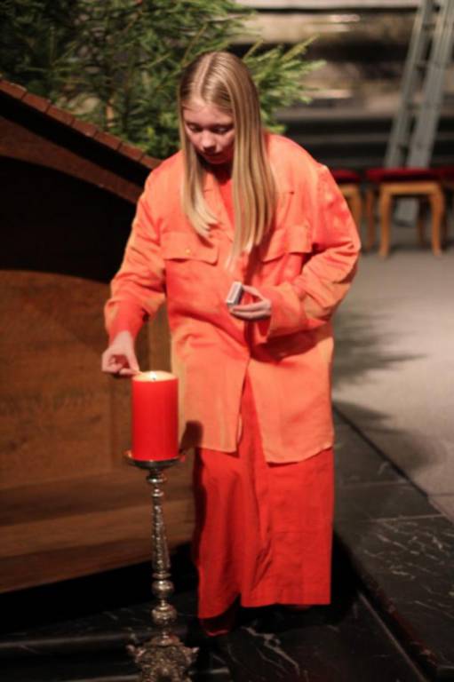 Im Familiengottesdienst zum Beginn des Advents hat die Ministrantin Corinne Rohrer die erste Kerze am Adventskranz angezündet.