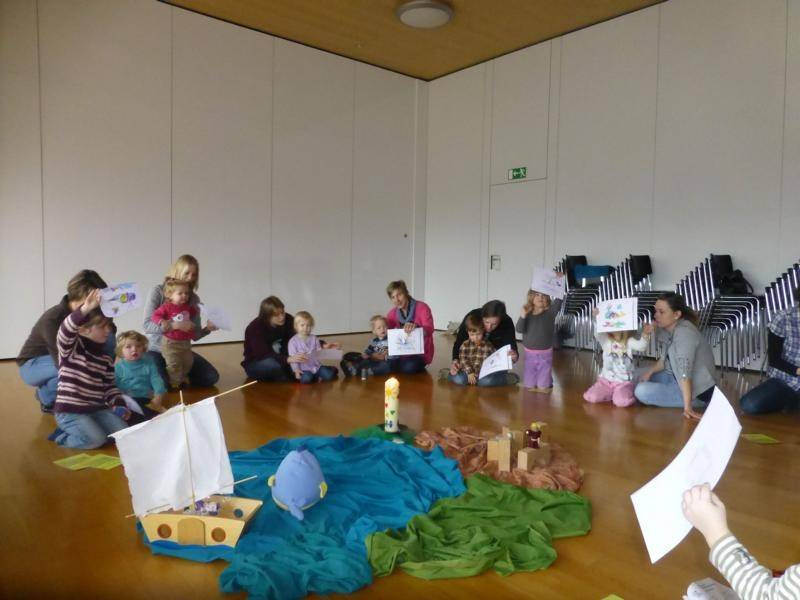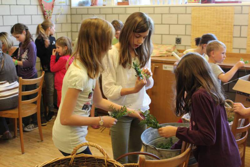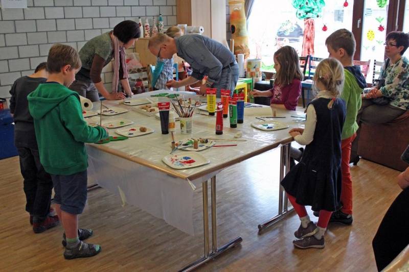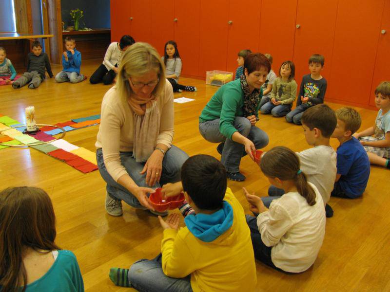 Anschliessend an das Essen hat Irene Rüttimann für die Kinder eine besondere Attraktion angeboten. Sie erzählte eine Geschichte, und anschliessend durften die Kinder Getreidesamen in Tassen setzen.