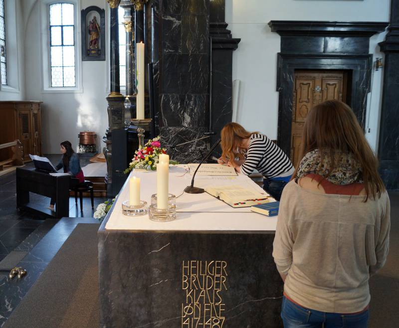 Am Mittwoch Vormittag sind die Jugendlichen gemeinsam mit den Taubblinden schweigend in den Ranft gegangen. Dort fand eine sehr eindrückliche Segensfeier statt. Der Höhepunkt dieser drei Tage war dann der Abschlussgottesdienst am Mittwoch um 19.00 Uhr, von den Taubblinden und Jugendlichen mitgestaltet.