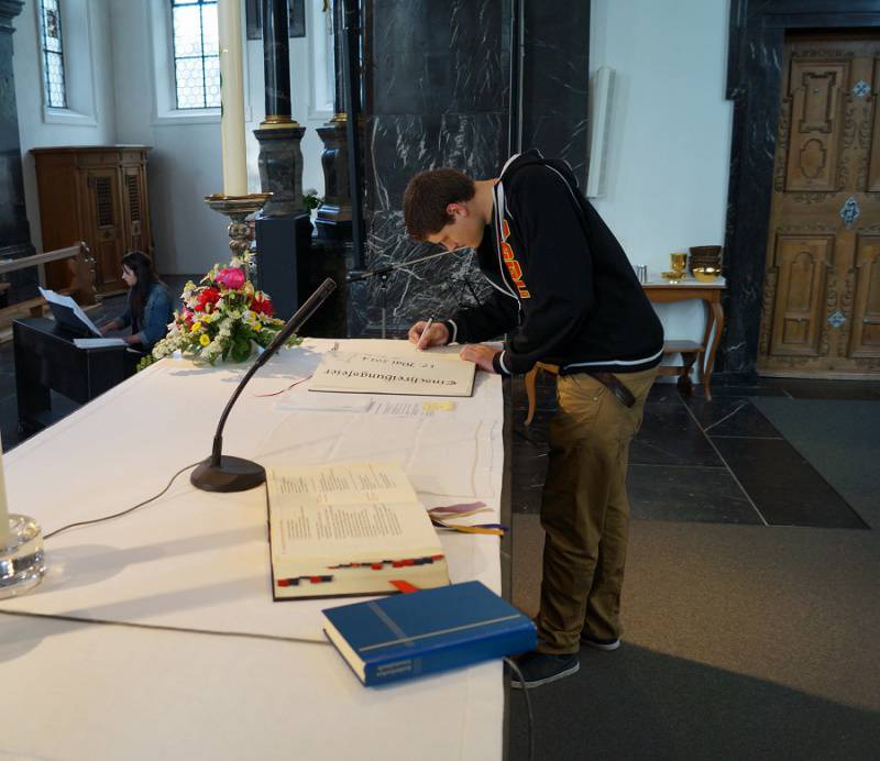 Firmlinge, Firmpaten, Eltern und Firmbegleiter wirkten im Gottesdienst mit. Vor allem die musikalischen Beiträge seitens der Firmlinge sorgten für sehr eindrückliche Momente. Zum Schluss waren Kirchenbesucher und Firmlinge sich einig: es war eine schöne Einschreibungsfeier.