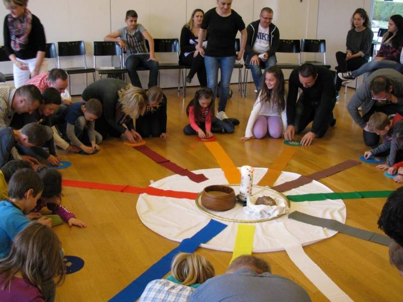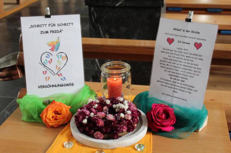 Die Viertklasskinder der Katechetin Irène Rüttimann sind in diesen Tagen auf den Versöhnungsweg eingeladen. Versöhnung - Frieden schliessen - ist den Kindern im Schulalltag und von zu Hause her nahe. Sie verstehen, dass es von Zeit zu Zeit notwendig ist, mit den Mit-menschen und mit dem Herrgott Frieden zu schliessen. Mit den beklemmenden Beichtstuhlerfahrungen ihrer Eltern und Grosseltern hat dieses Busssakrament nichts mehr zu tun.