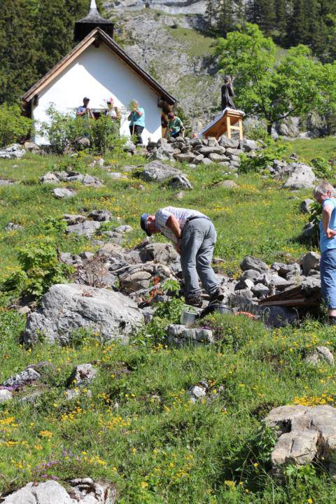 Am Dienstag stand der gemeinnützige Einsatz auf dem Tagesprogramm: Begleitung und Unterstützung von pflegebedürftigen Menschen, Entfernen von Steinen und Unkraut auf der Alp, Renovierung von Wanderwegen usw.