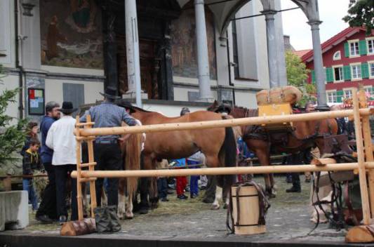 Tierische Nachbarn gab es am Wochenende rund um die Kirche. Die Organisatoren des Säumerfestes präsentierten zusammen mit der Trainvereinigung Unterwalden Saumtiere für den Weg nach Italien. Kostüme der Begleitpersonen und Beladung der Maultiere entsprechen den Saumtierzügen früherer Zeiten. Der Anlass gilt als Start für die Sbrinz-Route. Dabei legen die Beteiligten die Strecke von Sachseln nach Domodossola in einer Woche zu Fuss zurück. Die Vorbereitungen zum Abmarsch und ein buntes Marktgeschehen entwickelten sich zu einem Dorffest.
