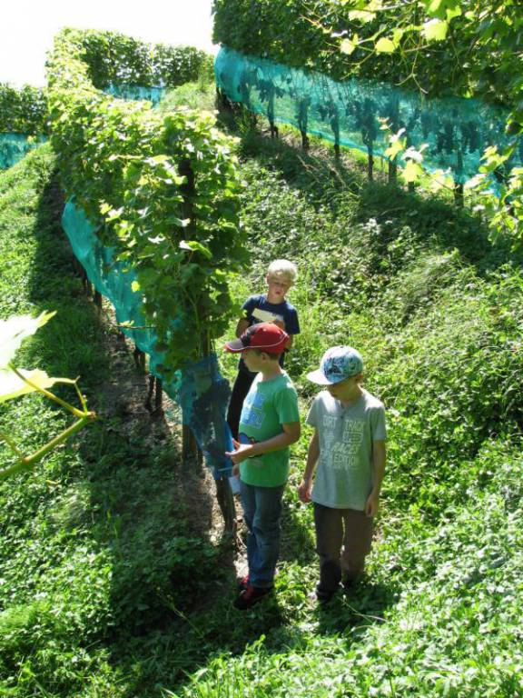 Die beiden Erstkommunikanten vom Flüeli entdecken im Rebberg in Kägiswil einen besonderen Schatz