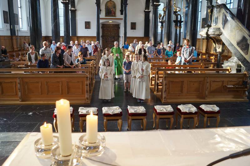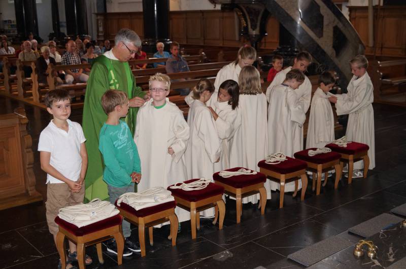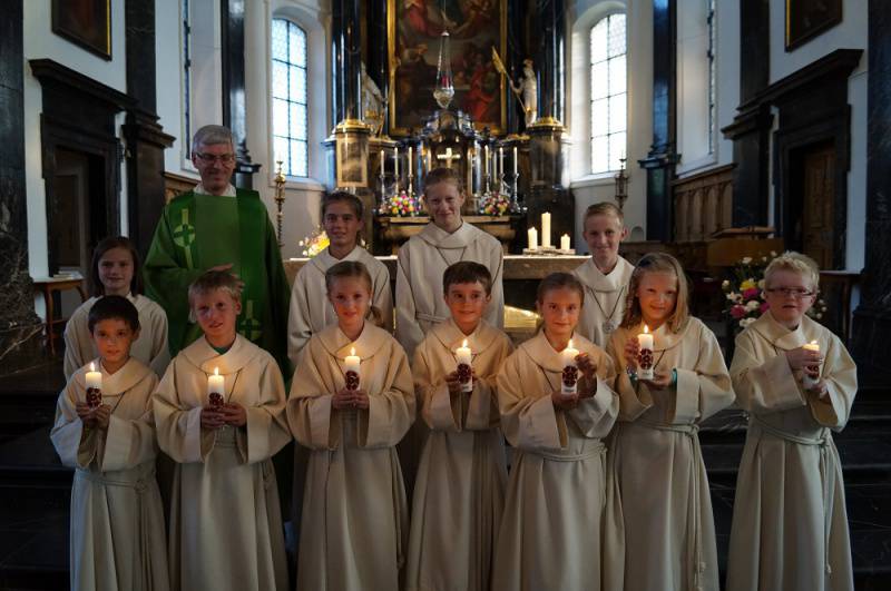 Am Samstag, 6. September gab es für unsere Pfarrei Grund zur Freude. An diesem Tag wurden nämlich drei Mädchen und vier Buben in unsere Minischar aufgenommen. Wir heissen (Bild unten, vordere Reihe v.l.n.r.) Emil Berchtold, Timo Weber, Magdalena Burch, Aidan Winterhalder, Antonia Kathriner, Leona Garovi und Noah Schwegler herzlich willkommen in unserer Schar und wünschen ihnen viel Freude in der Ausübung ihres neuen Dienstes.