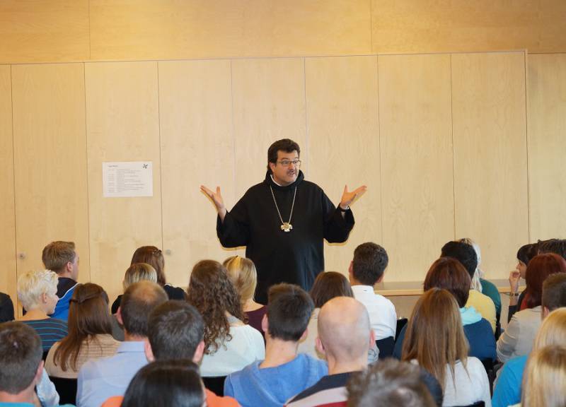 Am Nachmittag kam der Firmspender Abt Christian Meyer vom Benediktinerkloster Engelberg zu Besuch. Die Firmlinge trafen ihn zum ersten Mal. So wollten sie Einiges von ihm erfahren: Warum sind Sie Priester geworden? Wie sind Sie Abt geworden? Warum kann der Pfarrer keine Firmung spenden? Neben der Beantwortung dieser und weiterer Fragen ging Abt Christian auf die Bedeutung des Firmsakramentes im Leben eines Christen ein und erklärte die verschiedenen Zeichenhandlungen bei der Firmung.