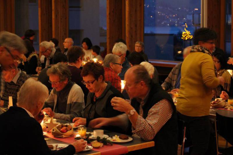 Manche Pfarreiangehörigen liessen sich am 8. Dezember vom Kerzen-schein und den sanften Klängen in der Kirche und beim anschliessenden Zmorgä im Pfarreiheim verzaubern.