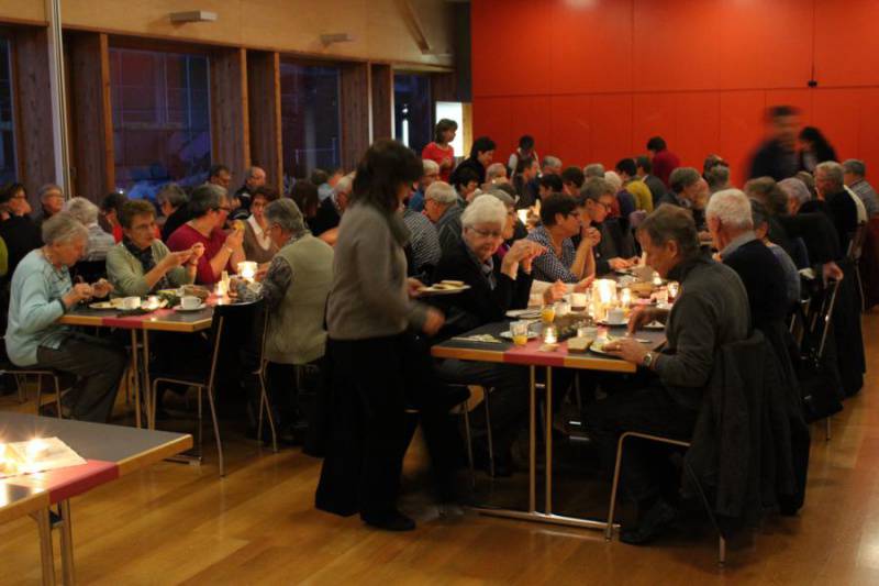 Am Palmsonntag hat der Pfarreirat zum gemeinsamen Suppenessen eingeladen. Nach dem Familiengottesdienst trafen sich über hundert Sachslerinnen und Sachsler zum gemeinsamen Suppenessen. Freiwillige aus dem Pfarreirat und Firmlinge bereiteten die reichhaltige Gemüsesuppe zu.
