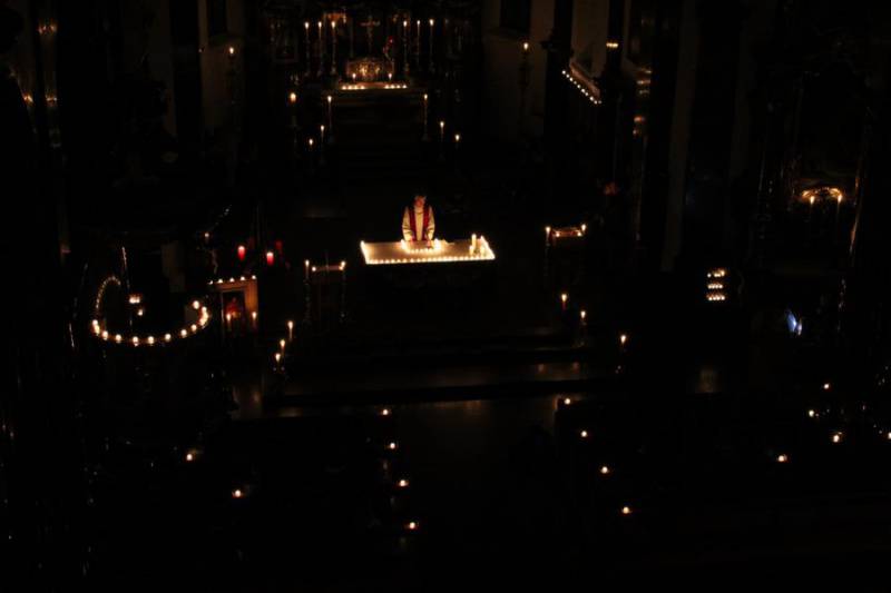 Roratefeier am frühen Morgen in der dunklen Pfarrkirche.