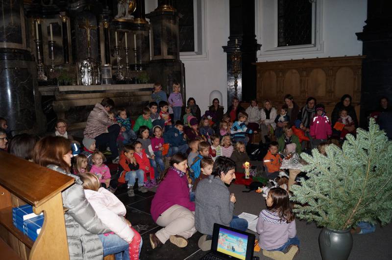 Eine erfreulich grosse Anzahl Kinder, Eltern und Grosseltern lauschten der spannenden Geschichte, die verriet, wie die Tiere aus dem Stall vom Bethlehem sich auf die Geburt von Jesus vorbereitet haben.