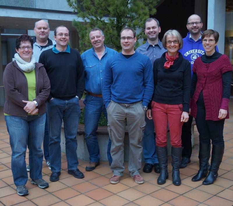 v. l. n. r.: Sonja Kathriner, Reto Bruni, Dominik Rohrer, Bruno Schär, Felipe Quintans, Cristinel Rosu, Marianne Perroulaz, Stephan Starkl, Beatrice Oertig