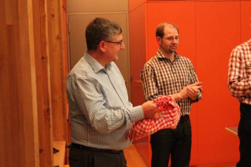 Zu verschiedenen Sequenzen aus seiner Zeit vor und in seiner Kirchenratszeit bekam Markus Amrein von den Pfarreiratsmitgliedern Andenken mit den entsprechenden Erklärungen und "blies uns den letzten Marsch".