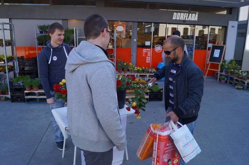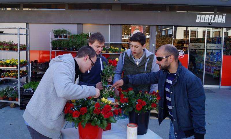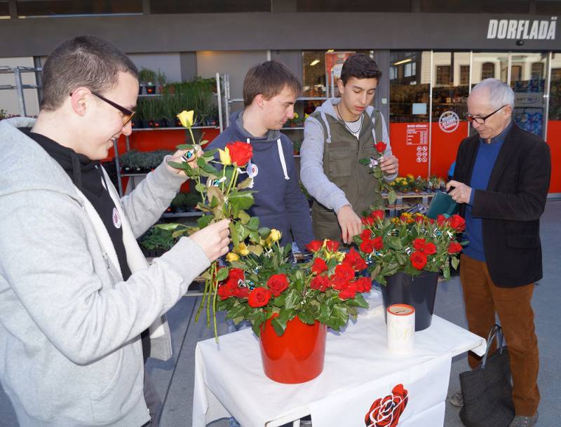 Firmlinge verkaufen Rosen für einen guten Zweck