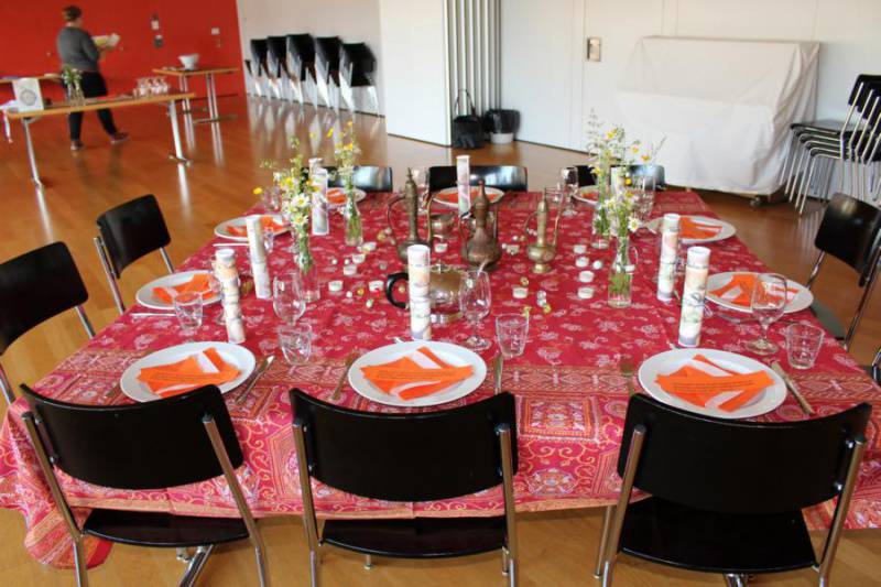 Nach gut einer Stunde stand ein leckeres Menü auf dem stilecht gedeckten Tisch. Und es schmeckte köstlich. So richtig orientalisch eben.