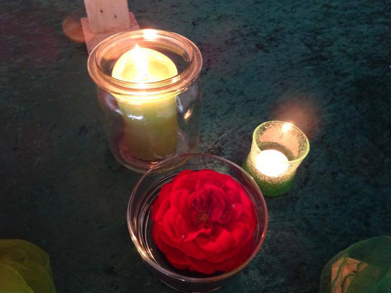 Es war ein farbenprächtiges Spiel, welches die Kirchenmusikerin Cornelia Nepple, dieses Jahr unterstützt durch Annika Wiedenmann und Romy Isler, zum dritten Mal am Karfreitag aufführte. Bis aufs Detail stimmten die Reqisiten. Die Dornenkrone war aus geflochtenen Zweigen. Pilatus wusch seine Hände in Unschuld. Der Lederbeutel mit dem Silbergeld blieb vor der Kirche liegen. Rosenblätter fielen wie Blutstropfen auf den gepflästerten Boden. Die gespielten Szenen waren allen Anwesenden bekannt. Nur wurden diesmal Passionstexte sicht- und hörbar. Das Feuer im Hinterhof knisterte. Und der Hahn krähte drei Mal.