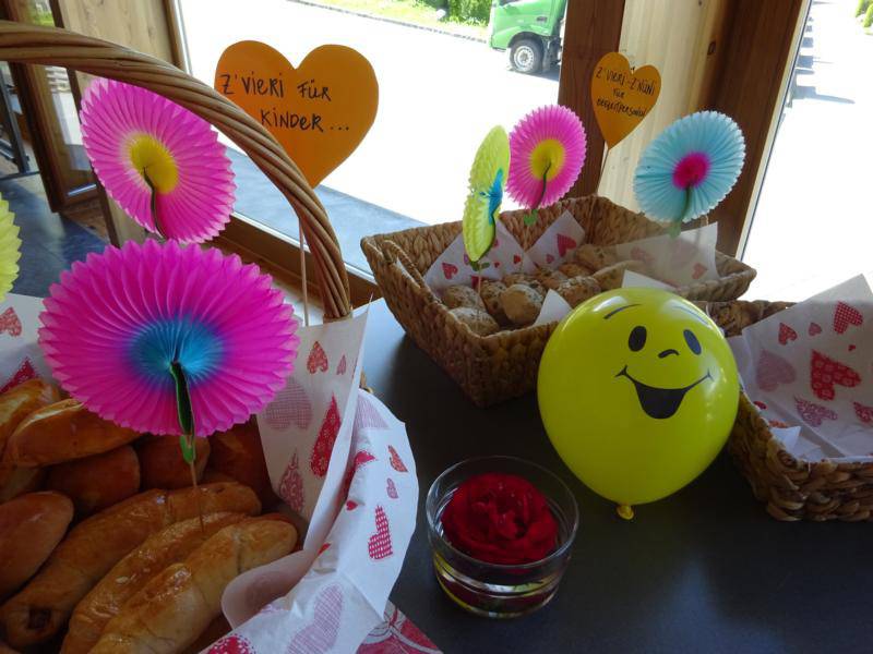 Auch im Flüeli verdienen Palmsonntag und Suppentag besondere Aufmerksamkeit. Bei schönstem Frühlingswetter segnete Abbé Pascal auf dem Feierplatz die grünen Zweige im Andenken an den Einzug von Jesus am Palmsonntag in Jerusalem. Kinder und Erwachsene trugen diese in einer kleinen Prozession zur Kapelle. Die Katechetin Irène Rüttimann mit ihren Zweitklasskindern und Abbé Pascal gestalteten den Familiengottesdienst mit dem Motiv "Teilen". Abbé Pascal verwies in seiner Predigt auf ein afrikanisches Sprichwort: "Was für einen gekocht wird, reicht für viele." Irène Rüttimann zeigte bildlich mit den zwei gedeckten Tischen, was möglich wird, wenn Menschen miteinander teilen.