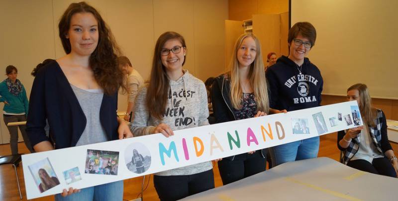 "Der Weg ist das Ziel" lautet das Motto, das die Firmlinge für den Firmweg 2016 gewählt haben. Und wie wollen sie den Weg gehen? "MIDÄNAND", wie die Firmandinnen auf dem Bild stolz zeigen.