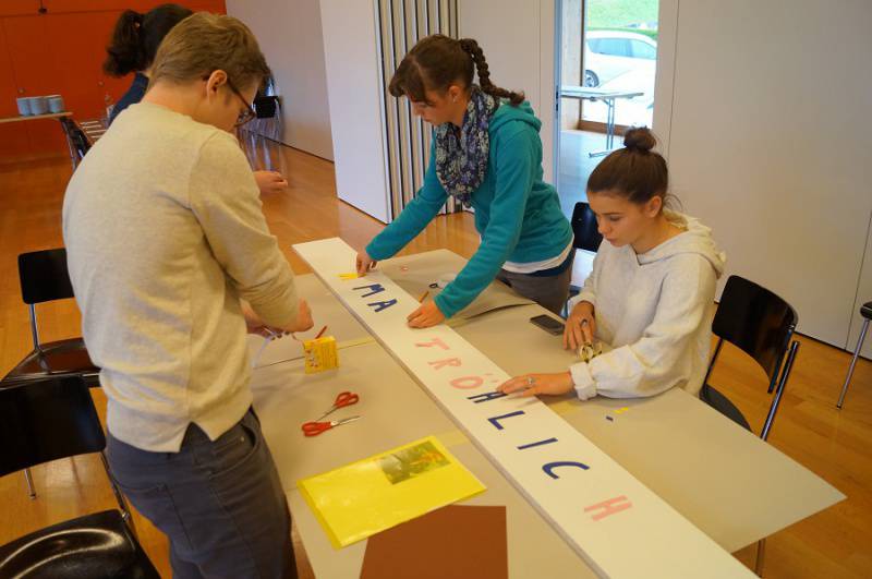 Das schöne Plakat haben die Firmandinnen und Firmanden im Rahmen des Intensivtages am 30. Oktober gestaltet. Im Firmgottesdienst am 13. November wird es aufgestellt. Auch andere Vorbereitungen wurden an diesem Tag getroffen. Dazu gehört die Begegnung mit dem Firmspender, Weihbischof Marian Eleganti. Er lud die Firmlinge und ihre Firmpaten dazu ein, mit Gott "online" zu sein. Man könne nicht sagen, es gäbe keinen Gott, wenn man nicht versuchen würde, mit ihm in Kontakt zu treten und eine Beziehung zu ihm aufzubauen.