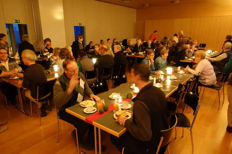 Gedämpftes Licht und leise Töne sind das erfolgreiche Rezept der Roratefeiern. Und viele adventlich gesinnte Leute schätzen das. Sie besuchen frühmorgens um 6.00 oder 06.30 den Gottesdienst in der nur mit Kerzen beleuchteten Kirche. Anschliessend lassen sie sich gerne bei einem Frühstück auf den anbrechenden Tag einstimmen. Danke allen, die sich für die Gestaltung der Roratefeiern und der Vorbereitung des Frühstücks einsetzen.