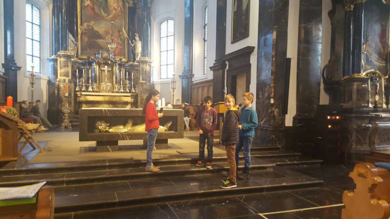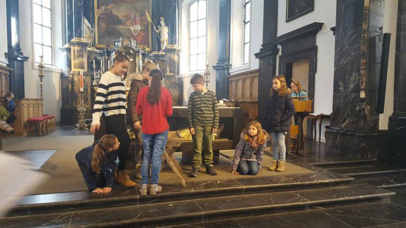 Im Rahmen der Vorbereitung auf den Weissen Sonntag erhalten die Kinder der zweiten Klassen schon jetzt eine Einführung in das Feiern in der Kirche. Rosalia Kaeser und Daniel Durrer erklären den Kindern im voreucharis-tischen Gottesdienst mit Gegenständen aus dem Alltag, wie Jesus im täglichen Leben mitten unter den Menschen ist. Die Zweitklässler stellen erfreut fest: "Wir dürfen dort feiern, wo sonst nur der Pfarrer und die Ministranten sind."
