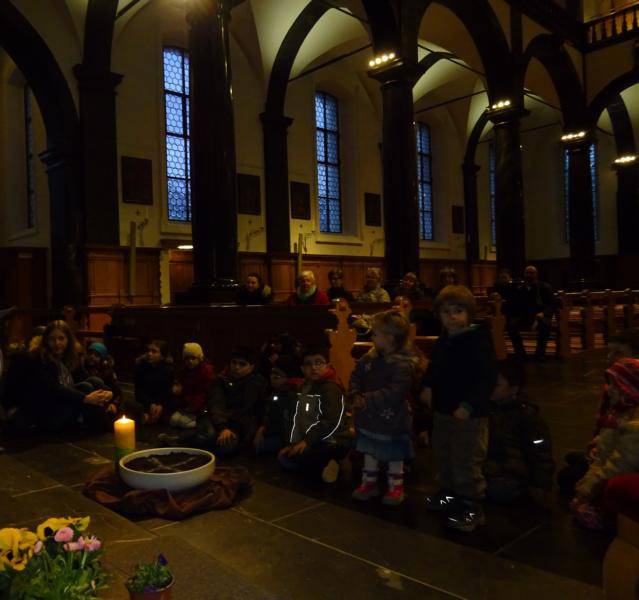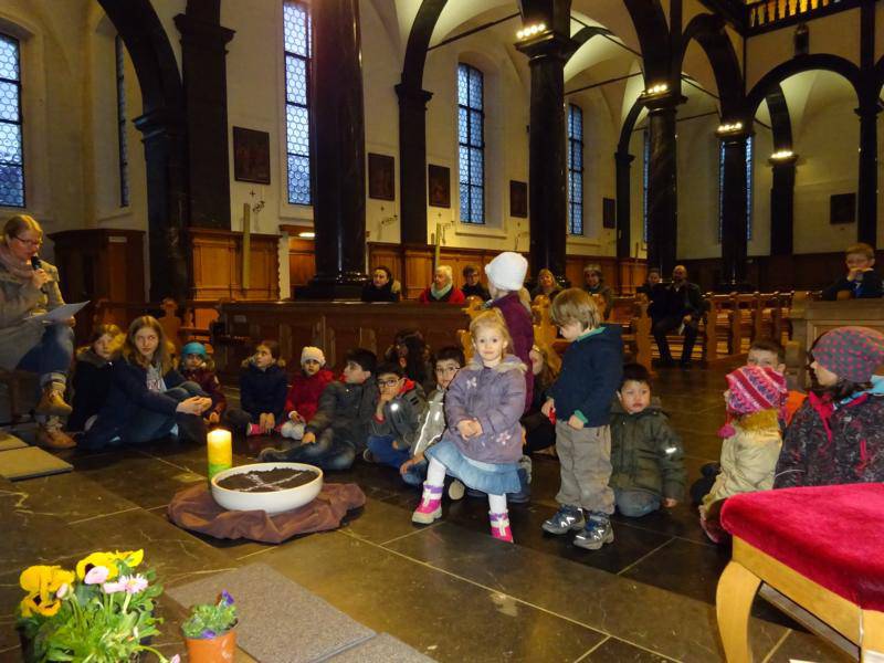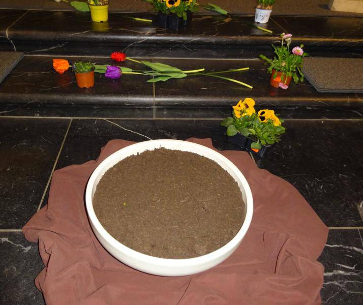 Die Asche erzählt uns, dass alles einmal zu Ende geht, das Schöne, das Leuchtende, die duftenden Zweige, was gross geworden ist. Doch die Asche ist nicht nur Staub, in ihr liegt eine neue Kraft versteckt. Darum haben wir diese Asche feierlich in die Kirche zur Erde getragen. Mit dem Aschenkreuz durften alle ein Heiliges Zeichen empfangen und so eine besondere Lebenskraft spüren. Die Geschichte von der Aschenblume liess die Kinder staunen und schenkte ihnen ein farbiges Bild in ihre Herzen. Ein eindrückliches Bild – wenn aus toter, grauer Asche ein lebendiges Bild entsteht. Mit diesem Eindruck dürfen wir alle neu hoffen und vertrauen, dass aus allem, das zu Ende geht – etwas Neues wachsen und werden darf.