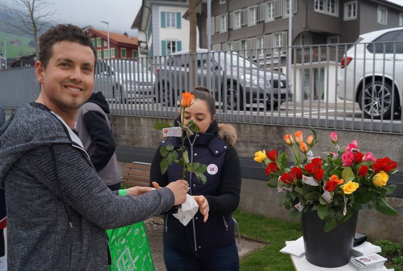 Alle Jahre wieder - und doch jedes Mal etwas ganz Besonderes: die Rosenaktion vom Fastenopfer. Unsere Firmlinge machen jedes Jahr mit. Mal mit einem Lächeln im Gesicht, mal mit einer Rose in der Hand gingen sie auf die Leute zu und überzeugten sie, die Aktion zu unterstützen. Einige Käufer gaben sogar kleine Spenden zum Rosenpreis dazu, lobten die Firmlimnge für ihr Engagement und wünschten ihnen viel Erfolg. Diesen hatten sie dann auch: In kurzer Zeit konnten sie 200 Rosen verkaufen und Fr. 1.073.00 zugungsten der armen Menschen im Süden ans Fastenopfer überweisen.