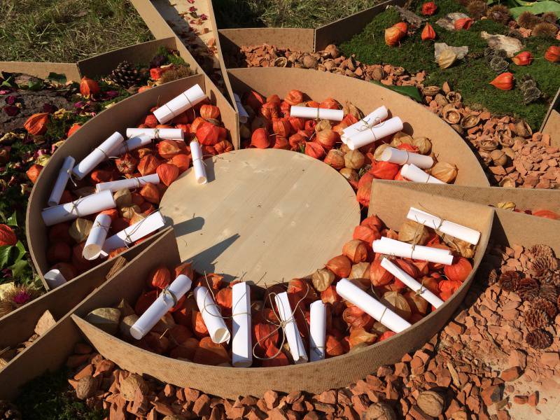Grabkapelle: Bruder Klaus, Friedensheiliger: Radbild mit Sand gestalten; Gedanken zu: „zufrieden sein“