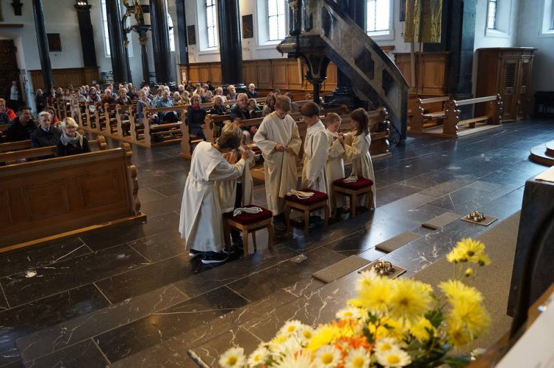 "Wir dürfen auf den Dienst von vielen Freiwilligen aus unserer Pfarrei zählen. Dazu gehören auch die Minis. Dafür sind wir sehr dankbar." Mit diesen Worten dankte Pfarrer Daniel Durrer im Gottesdienst am Sonntag, 22. Oktober. Anlass dazu gab ihm die Ministrantenaufnahme. Auf den Dienst von drei neuen Minis darf unsere Pfarrei zählen.