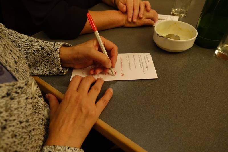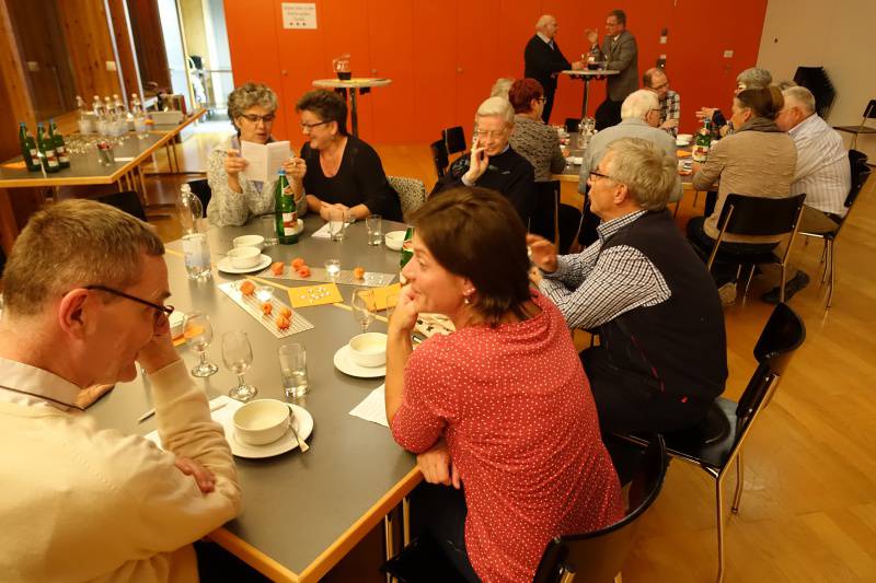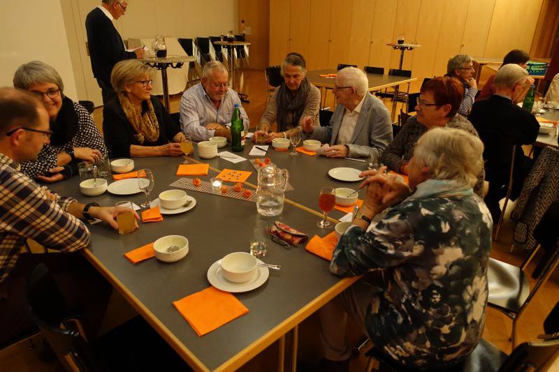 Nach einer leckeren Kürbissuppe aus der Küche von Franziska und Knoblauchbrot aus dem Ofen von Donato begannen die mehr oder weniger geübten Kenner/-innen mit dem Verkosten von Weinen. Niemand schaffte es auf Anhieb, alle sechs Nummern nach der Degustation dem richtigen Weinnamen zuzuordnen. Darum ging es auch nicht. Wichtig war der gemütliche Austausch und die Begegnung. Und diese fanden einmal mehr statt.