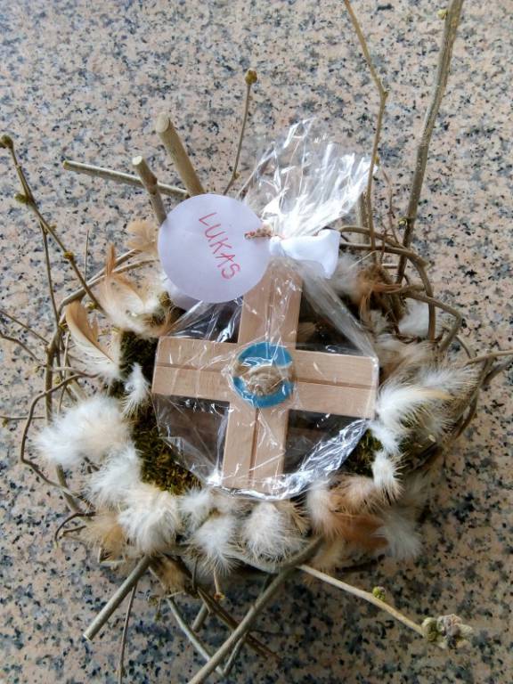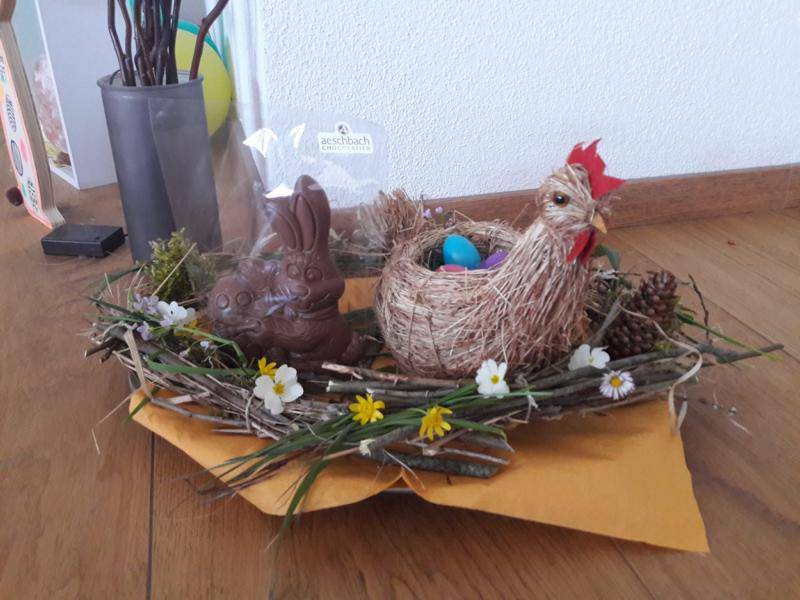 Auch die Religionslehrpersonen halten verschiedene Aufgaben für die Schülerinnen und Schüler bereit, damit sie sich auch zu Hause auf das Osterfest vorbereiten können. Sei es ein Osternest aus Naturmaterial zu basteln, ein Biblionär-Quiz im Internet zu lösen oder die biblische Ostergeschichte mit Lego nachzuerzählen.