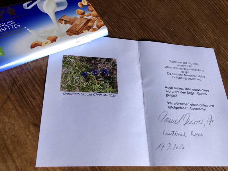 Mit dieser Botschaft im «Gepäck» macht sich auch der Pfarrer Sommer für Sommer auf den Weg zu den Alphütten. Alp, Menschen, Tiere, Maschinen und Geräte stellt er unter Gottes Schutz und Segen. Eine sehr geschätzte Tradition, die unser Pfarrer Daniel Durrer und unser Pastoralassistent Cristinel Rosu auch dieses Jahr umgesetzt haben.