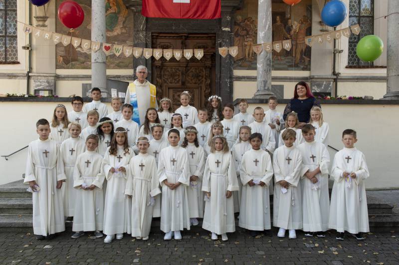 Diese Einladung durften am Sonntag 20. September 34 Kinder aus unserer Pfarrei mit ihren Familien und Angehörigen feiern. In froher Gottesdienstgemeinschaft waren wir versammelt und Jesus schenkte sich als Brot des Lebens. In diesem Sinne haben die Kinder gesungen: Ich ladä yych ii zu Brod und Wii und zum mid miär zämäsii. Dänkid a mich und a miis Riich, de wird ich immer bi yych sii.