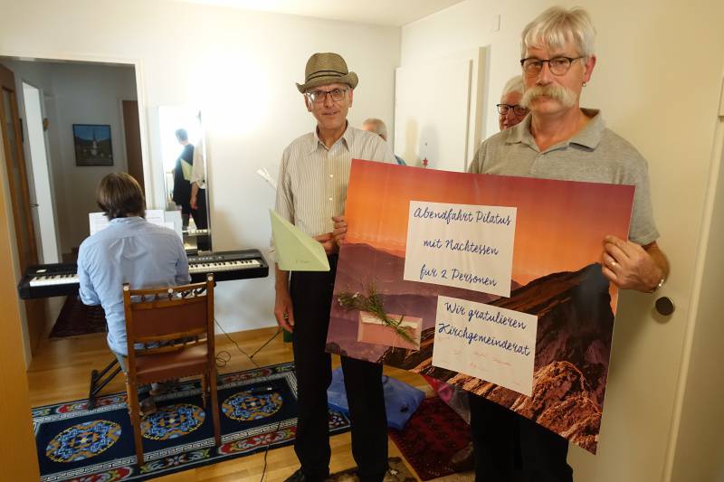 Der Kirchgemeinderat hat Daniel anlässlich seines halbrunden Geburtstags mit einer musikalischen Darbietung (David Erzberger und Paul Kopf) und einem - von Toni von Ah präsentierten - Geschenk gratuliert.