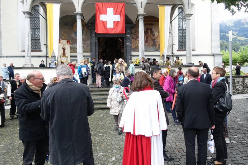 Unter Berücksichtigung der geltenden Pandemie-Regeln konnten Einheimische und Gäste aus nah und fern den 1. August feiern. Dieser gemeinsame Anlass von Kirche und Staat wurde organisiert vom Verein "Freunde Flüeli-Ranft". Der Sachsler Dominikaner-Pater Peter Spichtig hielt die Festansprache, dem Gottesdienst stand P. Josef Rosenast vor. Nach dem Gottesdienst waren alle zu einem Apéro ins Mehrzweckgebäude eingeladen. Und überall war spürbar: "Gottseidank musste diese Bundesfeier nicht auch noch abgesagt werden!"