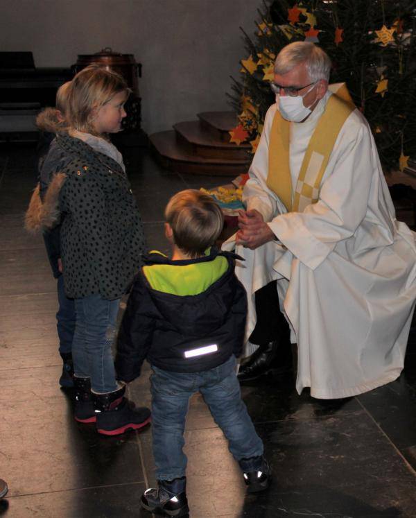 Zum Abschluss durften die Kinder bei der Krippe den Segenszuspruch von Pfarrer Durrer empfangen und einen «Schutzengel» samt Gebet als Erinnerung mit nach Hause nehmen.