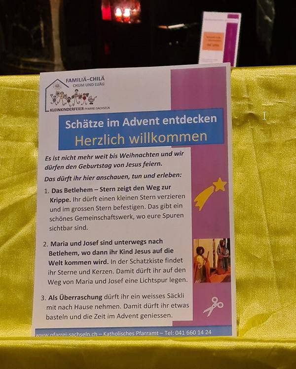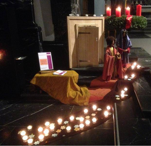 Zahlreiche Kinder haben mit ihren Begleitpersonen den Weg in die Kirche gemacht und sich adventlich überraschen lassen. Bei dieser etwas anderen Adventsfeier durften auch die Kinder ihre Spuren hinterlassen. Sie haben den Weg von Maria und Josef nach Betlehem mit Licht und Sternen heller erscheinen lassen. Durch die vielen kleinen, schön bemalten Sterne durfte «unser Betlehem-Stern» das Eingangsportal zur Pfarrkirche wunderschön schmücken.