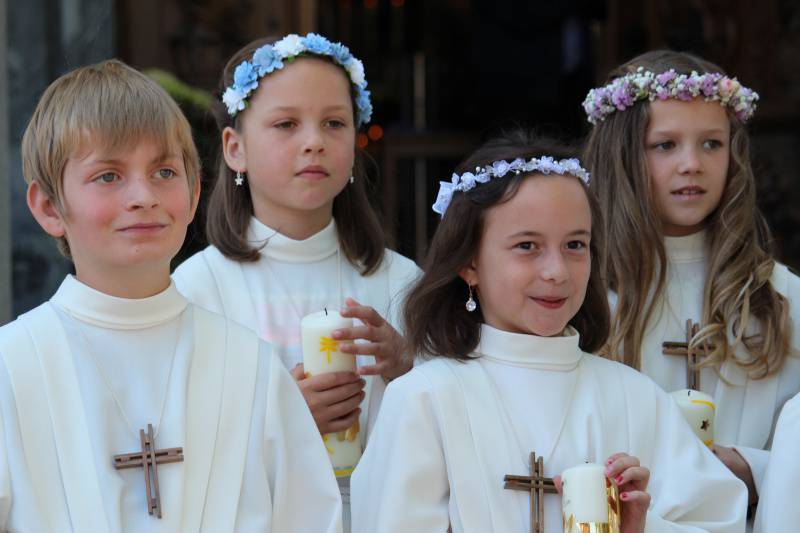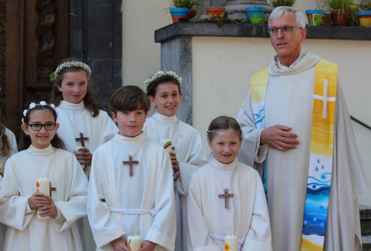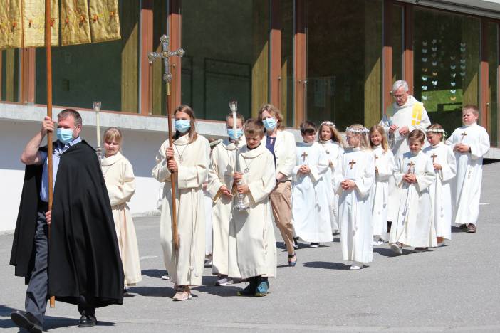 Schönstes Wetter, gute Stimmung und viel Freude im Dorf gehörten zur Erstkommunion vom 29./30. Mai. In vier Gruppen kamen die Kinder zum ersten Mal an den Tisch des Herrn. Zahlreiche Einheimische und Gäste nahmen Anteil am Anlass oder standen Spalier. Das grosse Bedürfnis nach einem Fest war förmlich zu spüren.