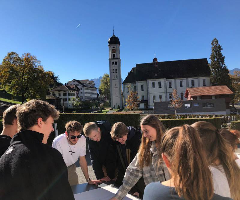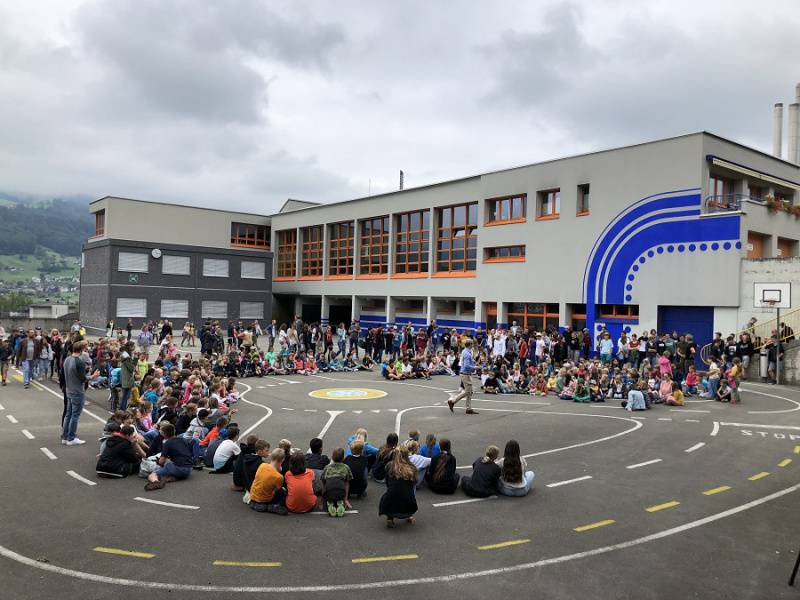 Im Rahmen einer kleinen Feier auf dem Pausenplatz des Mattli-Schulhauses wurde am 25. August das neue Schuljahr offiziell eröffnet. Rektor Remo Krummenacher begrüsste die Anwesenden herzlich. Er freue sich sehr, dass alle da sind, Schülerinnen und Schüler von der ersten bis zur neunten Klasse sowie alle Lehrpersonen, um gemeinsam ins neue Schuljahr zu starten. Agnes Kehrli und Cristinel Rosu vom Religionslehrpersonenteam waren eingeladen, einen spirituellen Input zu halten. Mit Hilfe eines grossen Kompasses und der darauf abgebildeten vier Himmelsrichtungen erbaten sie den Zuspruch (Segen) des Himmels fürs neue Schuljahr.