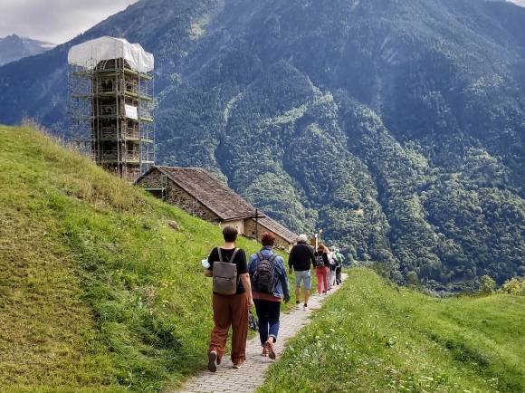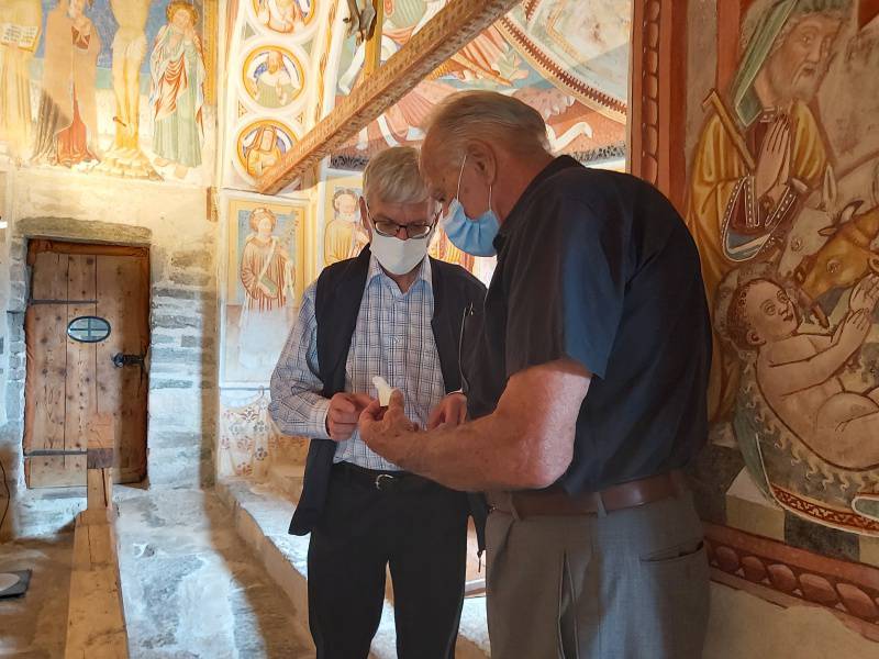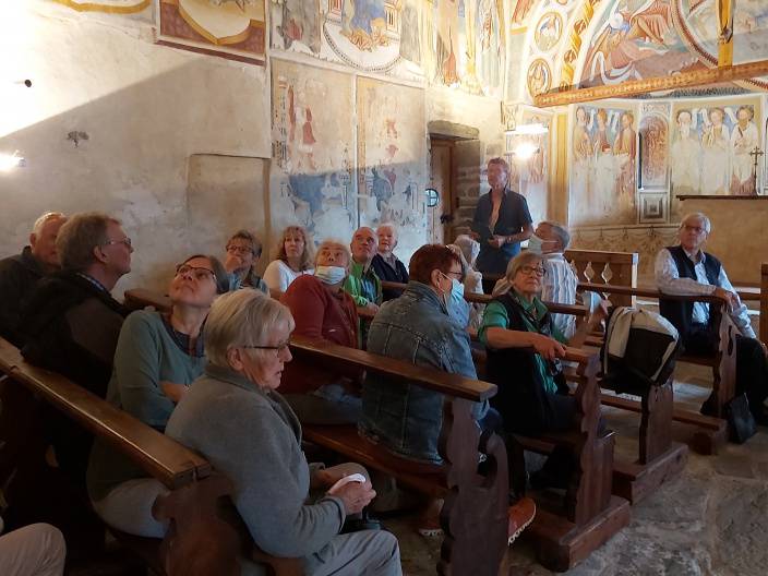 Im Rahmen des Pfarreiausflugs "Romanik im Bleniotal" vom 28. August liessen sich 27 Leute aus Obwalden in die Geheimnisse der Kirche San Carlo di Negrentino und anderer Sehenswürdigkeiten einführen. Die rund 1000-jährige Kirche hoch über dem Bleniotal verfügt seit diesem Tag über eine Reliquie von Bruder Klaus. Es war das Geschenk der Reisegruppe an Aurelio dell Oro - den Verwalter der Kirche - übergeben von Pfarrer Daniel Durrer. Auch eine Wanderung in der Tessiner Sonne und der Besuch eines Grottos fehlten nicht.