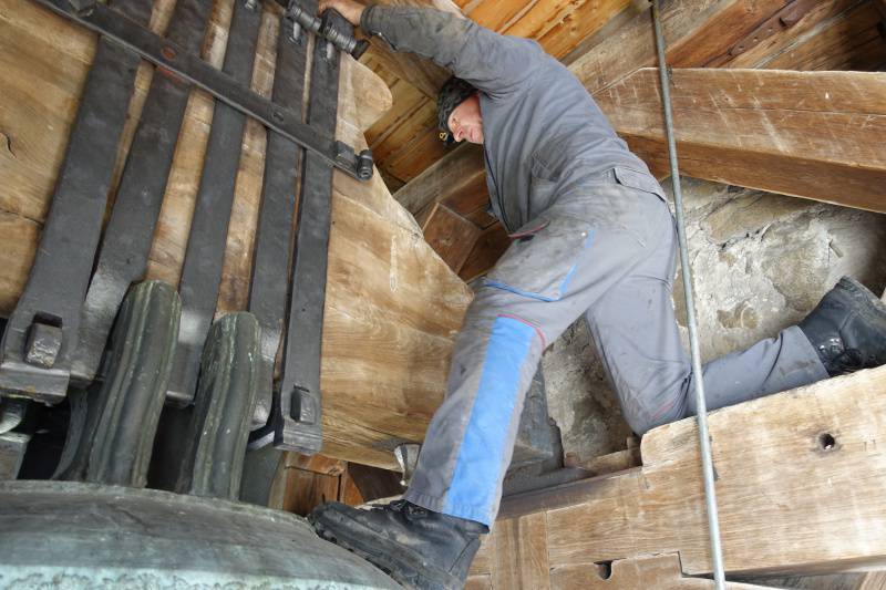 Im Rahmen von Revisionsarbeiten an der Kirchturmuhr und der Glockensteuerung staunte Herr Fuchs von der Firma "muribaer" nicht schlecht: Der Fachmann wusste nämlich auch nicht, weshalb vom Kirchturm um 22.15 Uhr gelgentlich ein abgewürgter Glockenschlag zu hören ist. Dies zudem nur an bestimmten Tagen. Im Moment scheint es der Mittwoch zu sein.