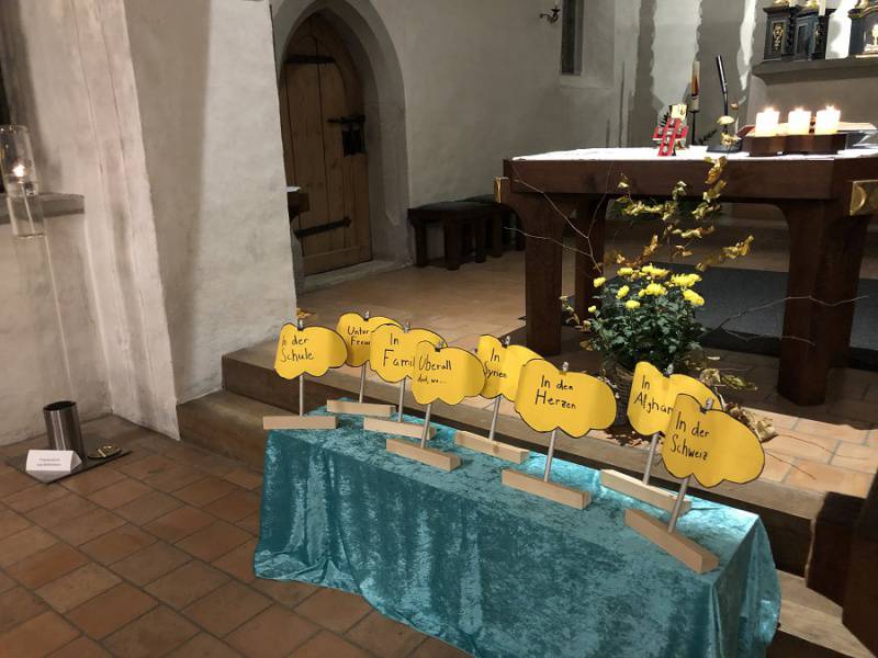 Also, liebe Kinder von 0- bis 5-jährig, wir freuen uns mit euch auf die gemeinsame Feier. Die Feiern dauern jeweils ca. 30 Minuten, es darf dabei gesungen, gelacht, gekrabbelt und gezappelt werden, einfach Kind sein. Auf den extra für die Kinder angefertigten Holzbänken dürft ihr eine spannende Geschichte hören und jeweils auch etwas dazu beitragen. Auch begleitet uns während der Feier immer das Licht unserer «Chlichinderfiir»-Kerze. Nach der Feier geniessen wir gemeinsam ein feines Znüni, dabei dürft ihr spielen und euch austauschen.