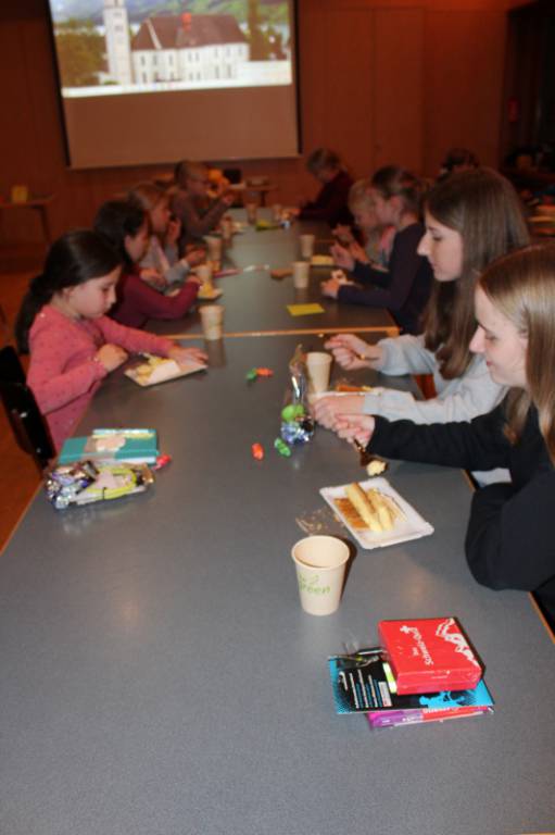 Die fröhliche Stimmung wurde gemütlich bei Bratchäs und Cremeschnitte, gekocht von unserm Sakristan Kurt. Wenn auch beim Lotto jeder für sich kämpfte, gewann dann beim Quiz mit Fragen rund um den Gottesdienst das beste Team den «Grossen Preis».